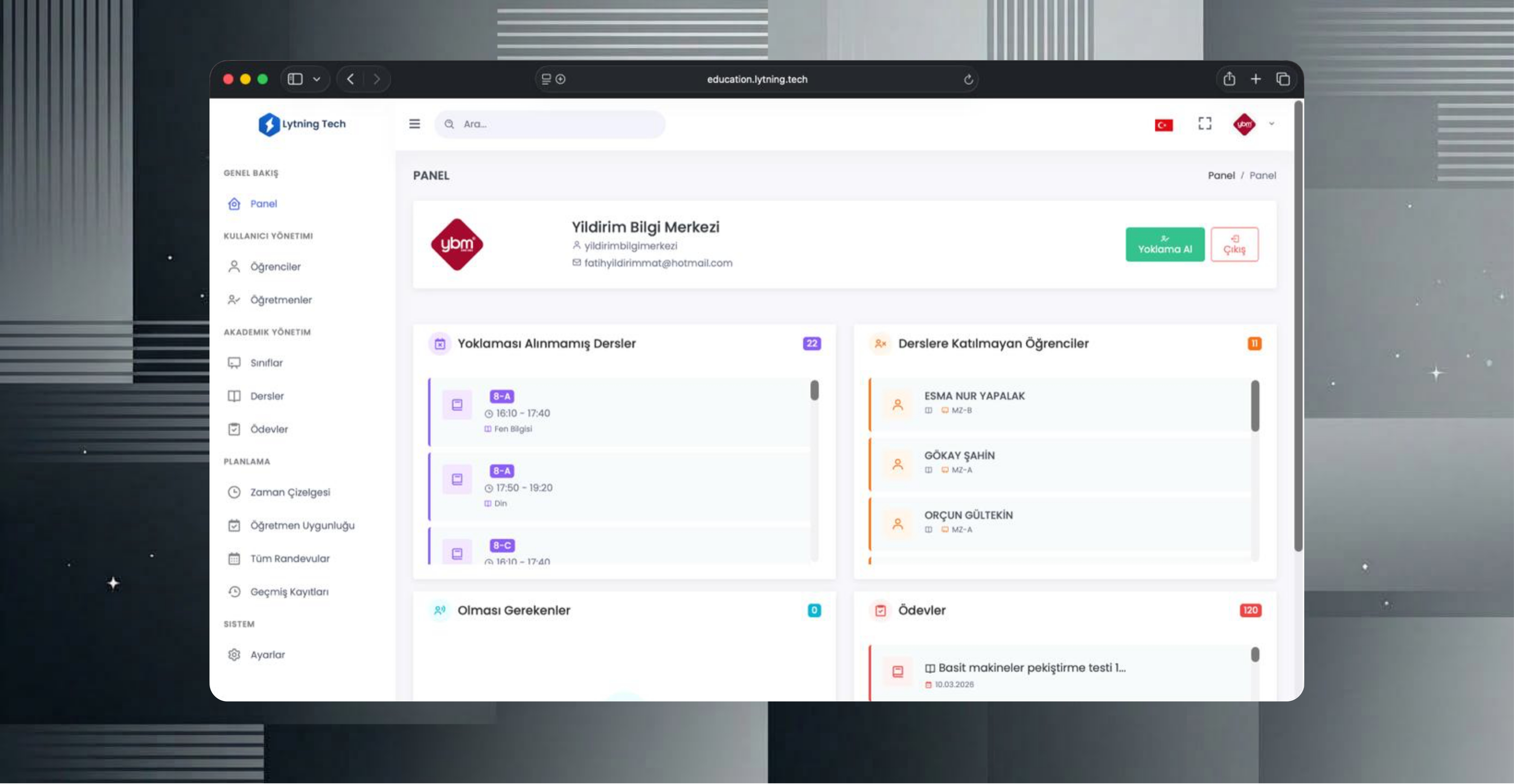 Yildirim Bilgi Merkezi is an education organization with multiple branches, instructors, and student cohorts. Before this engagement, their institutional presence was basic, and the operational side — enrollment, scheduling, performance tracking, and branch management — was handled through a patchwork of manual processes and disconnected tools.